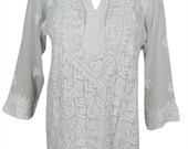 Figure Flattering Tunic Tops like our cotton chikankari embroidered tunics are crisp and tailored looking. This particular style is a classic base for any spring or early summer look. Pair with distressed denim jeans, flats, and copper bracelets for a Boho Chic style. Wear on the beach as a cover up or for that beach wedding looking surreal against the pink sunset and the turquoise blue ocean.