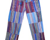 Womens Ruffles Cotton Blouse Pink Stripes and Brown Cotton Harem pants 2PC 70s Boho Fashion Clothing S/M